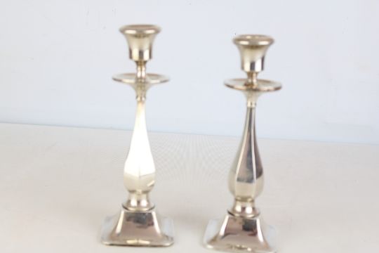 Pair of silver candlesticks Birmingham - repair to top of one candle stick Weight 700g