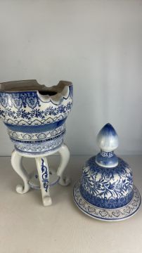 Blue and White Ceramic Table Brazier with Tripod Stand