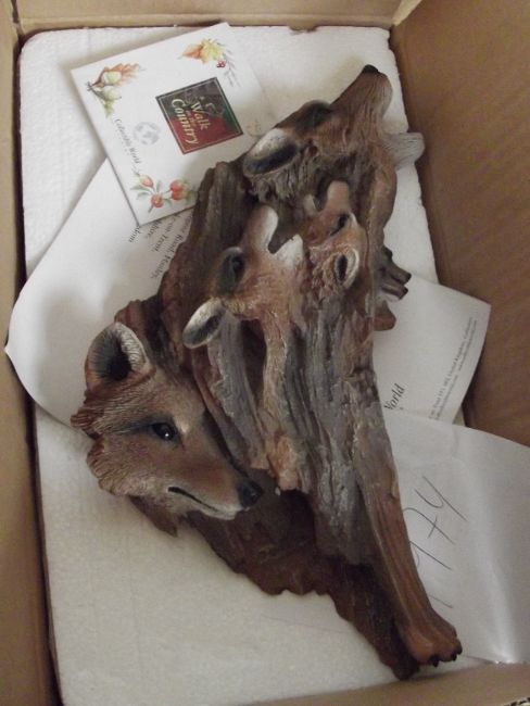 Resin wall plaque in the form of a leash of foxes together with resin group in the form of otters