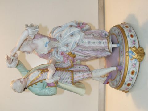 A group Bisque figure of a lady and gentleman dancing. "Exposition De Vienna" 1873 Autriche 39 cm (First condition)