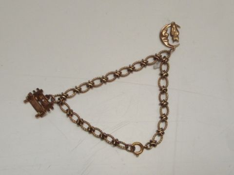 9ct gold charm bracelet with 3 charms. Approx 12 grams
