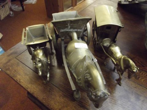 Three brass horse and carts