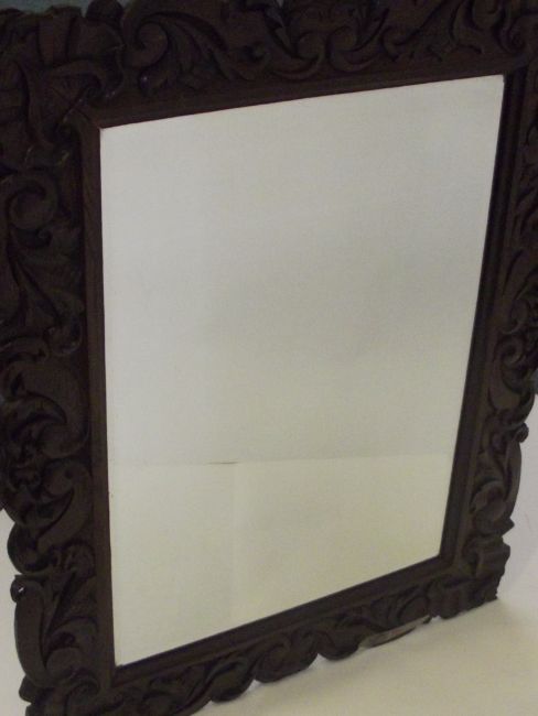 19th century bevel edged Rococo style mirror set in an oak frame, height 93cm, width 74cm