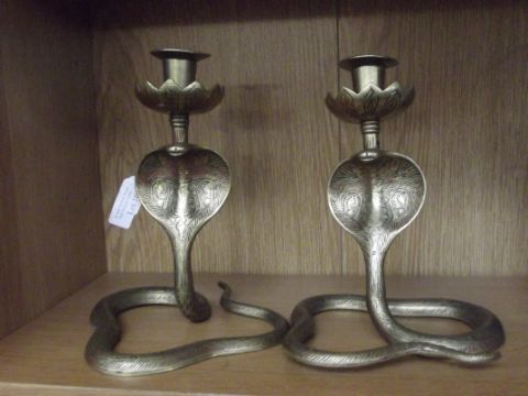 2 brass candle stick in the form of a snake