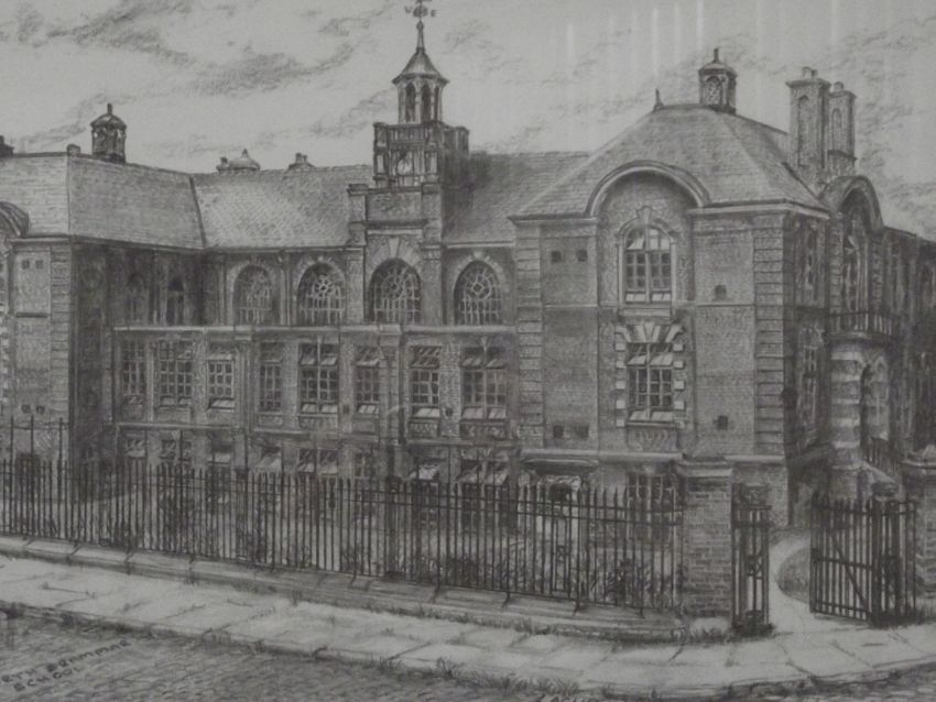 Pencil drawing of Farnworth grammar school