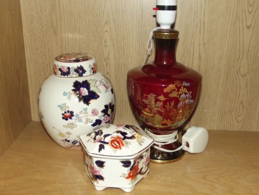 Two items in mason ironstone together crown devon table lamp