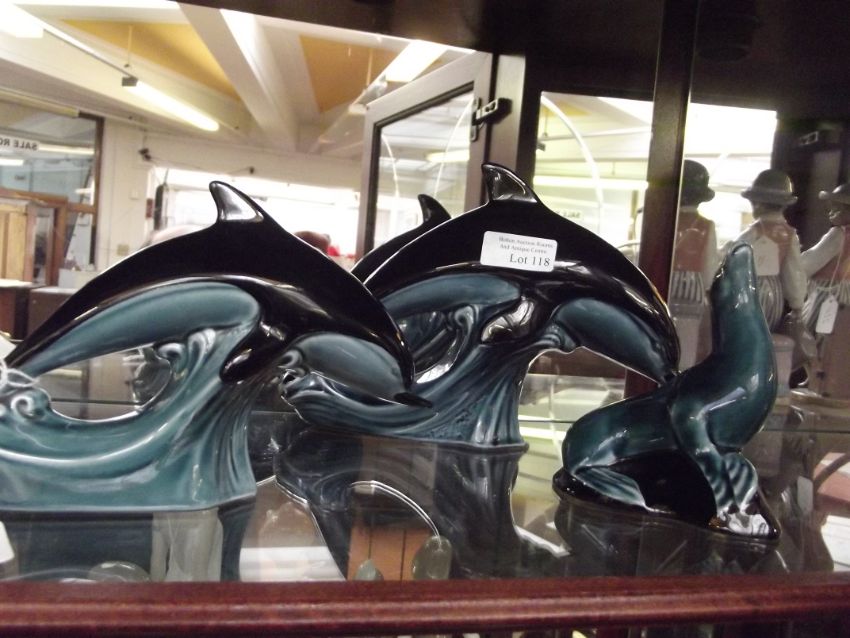 Two Poole dolphins together with a Poole sealion