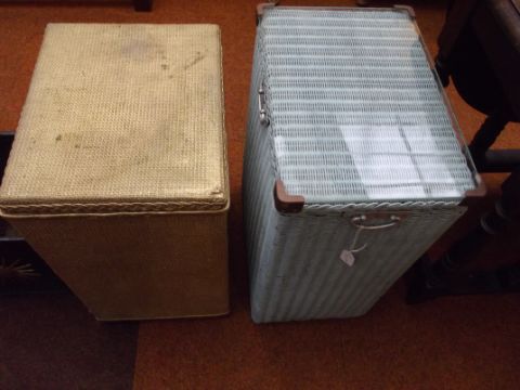 Two Lloyd Loom style laundry baskets