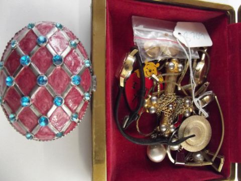 Collection of costume jewellery and decorative egg
