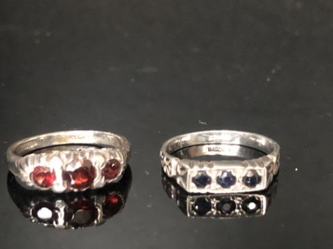 2 Silver & ruby rings boxed