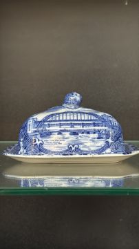 1929 Maling cheese dish, North East Coast Exhibition, Newcastle. Blue transferware depicts Tyne Bridge.