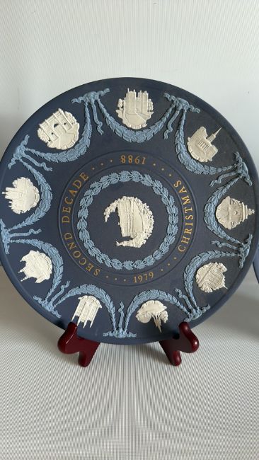 Wedgwood jasperware London Landmarks Christmas plates, 1969 & 1979 (2)