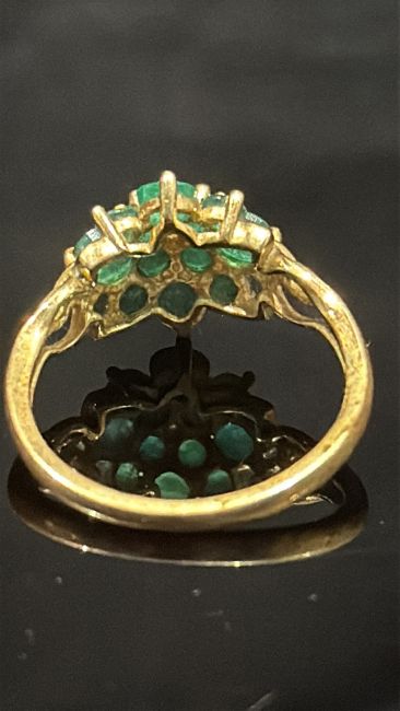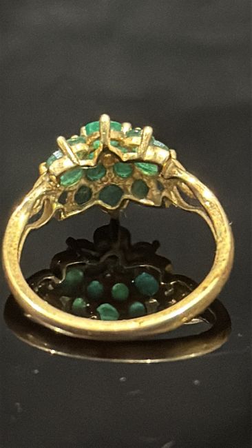9ct Gold ring set with emerald cluster with central small diamond Size N weight 2g