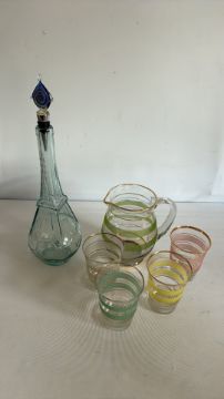 Eiffel Tower glass decanter and striped lemonade set, 7 pcs