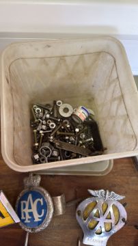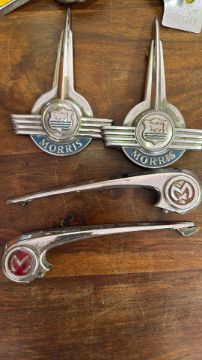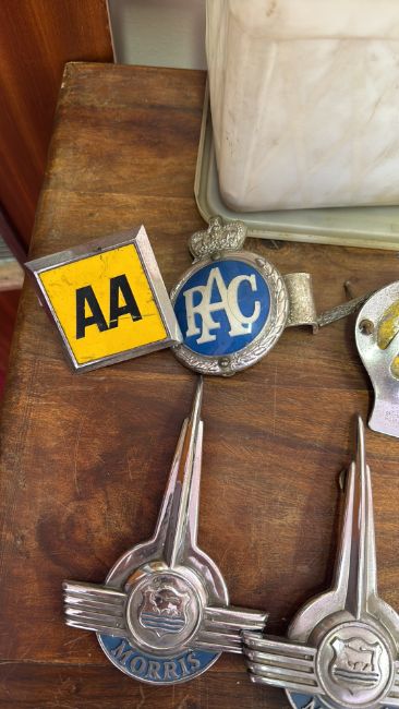 Collection of British automotive badges and handles