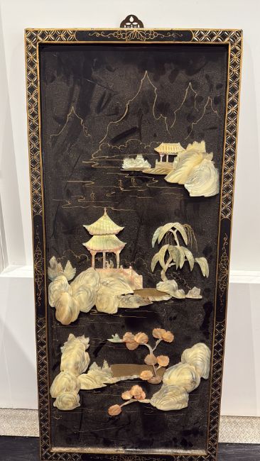 Chinese Hardstone-Inlaid Lacquer Wall Panel