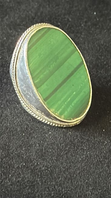 Large statement sterling silver malachite thumb ring Weight 24g
