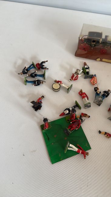 Collection of painted lead toy soldiers, cavalry and carriage, c.1940s-60s