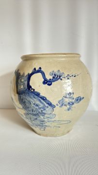 Chinese blue and white stoneware jar, height of 25cm and a max width of 27cm