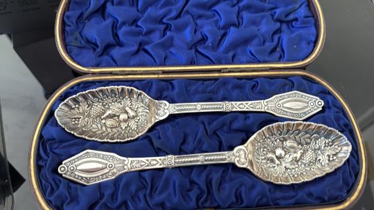 Set of cased silver plated fruit spoons