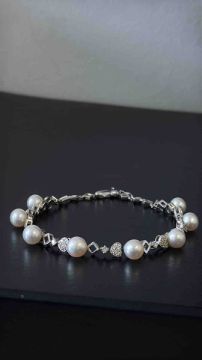 18ct White gold bracelet set with 8 pearls & 9 solitaire diamonds. Approx. size each 1/16ct. Approx. 0.5ct with additional chip diamonds in heart shape Total weight 15.3g