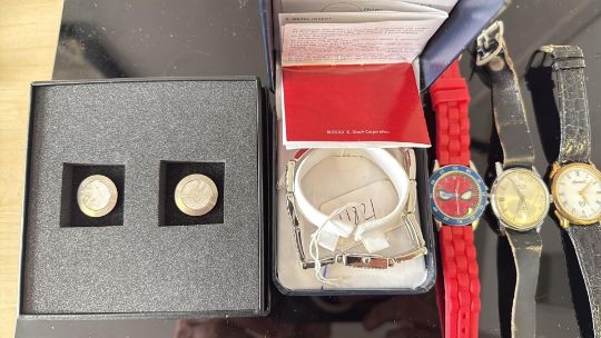 Pair of designer cufflinks & collection of wristwatches recommend for spares/repairs