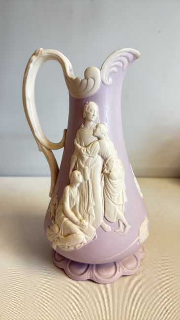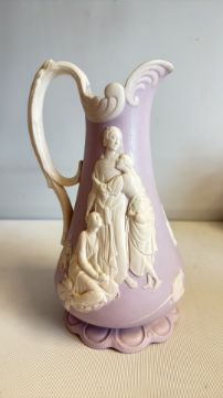 Samuel Alcock lavender sprigged stoneware jug, c.1850 hairline to the spout (height 23cm)