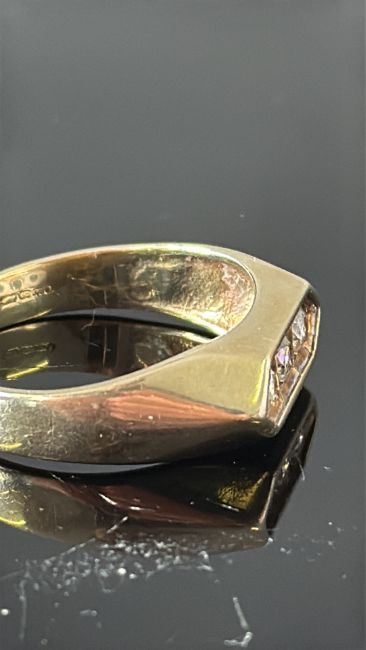 9ct Gold gents ring set with 3 diamonds Weight 5.1g Size W