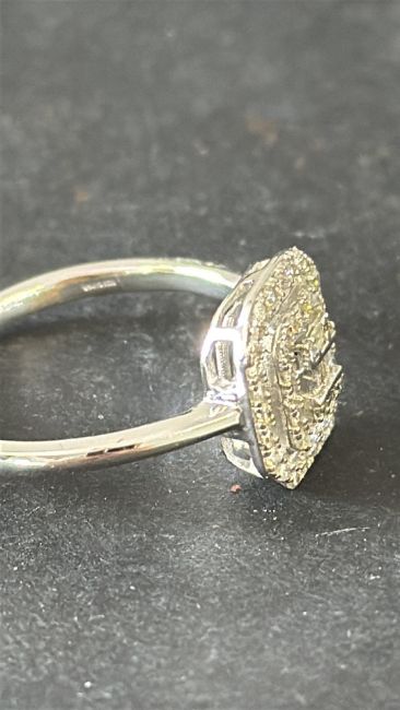 9ct White gold ring set with diamond cluster 0.26ct Size P Weight 2.9g