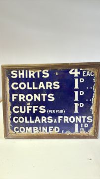 Original Enamel Laundry Tariff Sign, 53cm x 41.5cm (including frame)