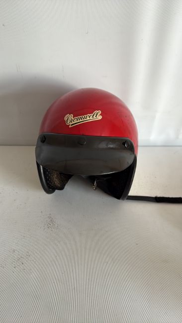 Cromwell red and gold open-face motorcycle helmet, c.1970s