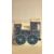 Carlton Ware train-shaped ceramic money boxCream-glazed earthenware money box moulded as a stylised steam locomotive, relief-decorated with teal and navy numerals; underside printed in gold “Carlton Ware, Made in England, Trade Mark”.