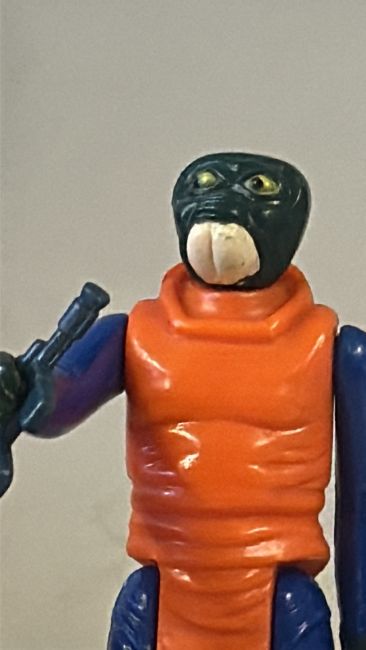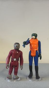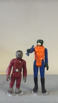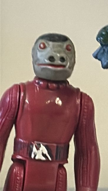 Pair of original Kenner 3.75-inch Star Wars cantina alien action figures—Walrus Man and Red Snaggletooth—moulded plastic with painted details, circa 1978.