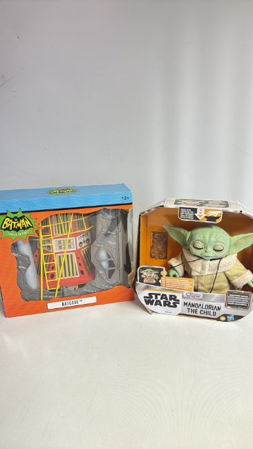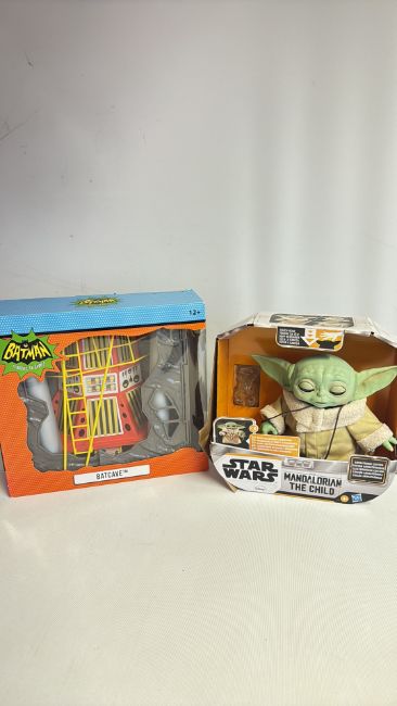 Pair of boxed Batman Batcave playset and Star Wars ‘The Child’ animatronic figure