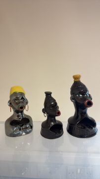 Set of 3 Australian ceramic Aboriginal-head figural ashtrays, c.1960s