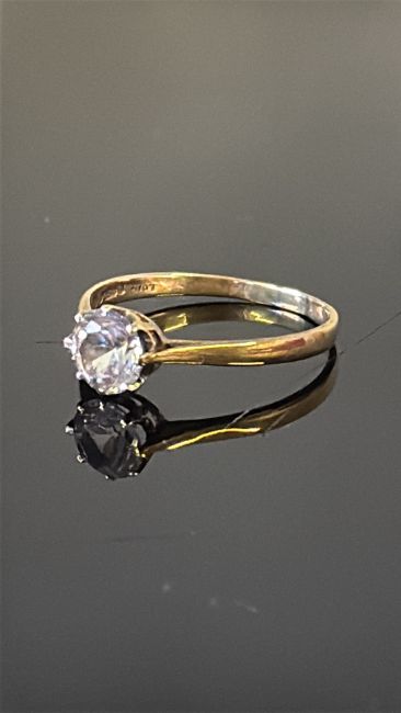 9ct Gold ring set with solitaire cz Weight 1.7g Size T