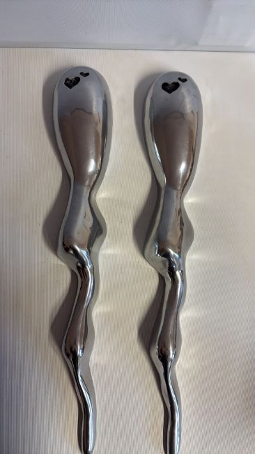Pair of sculptural polished aluminium door pulls