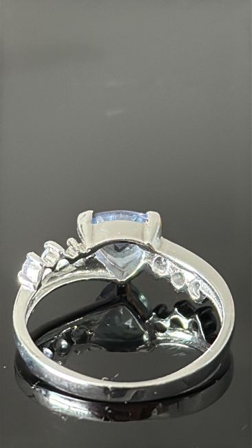 9ct White Gold ring set with tanzanite & white stones Weight 2.4g