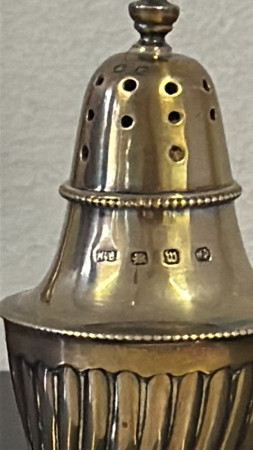 Pair of silver cruets, Birmingham hallmark date letter M Height 9 cm Weight 83g