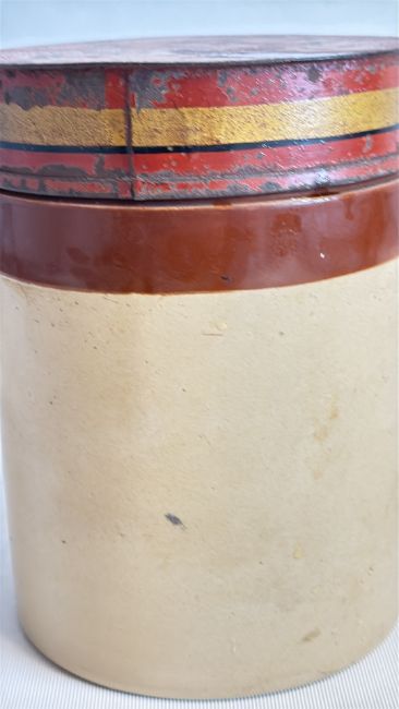Stoneware Peacock Mixture tobacco jar with tin lid