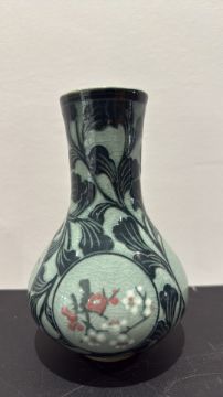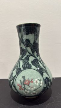 Chinese celadon crackle bud vase with Four Gentlemen roundels