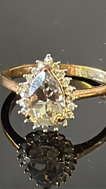 9ct Gold ring central possible citrine surrounded by diamonds Weight 3.1g Size R