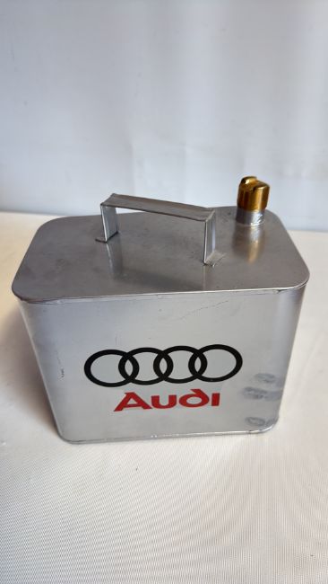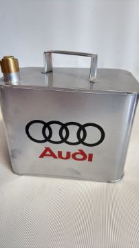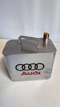 Silver Audi oil can