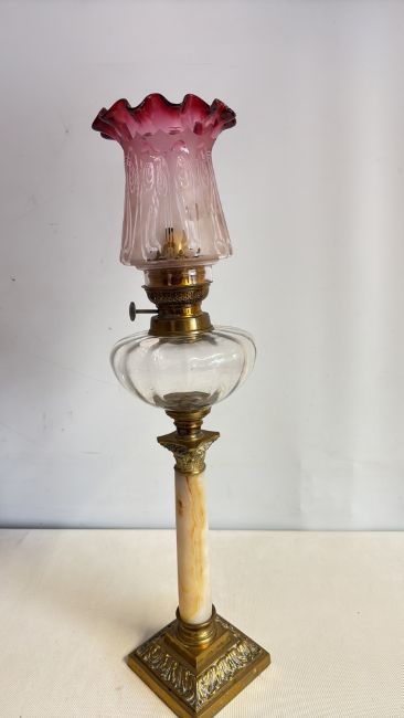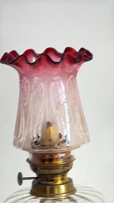 Victorian oil lamp cranberry shade