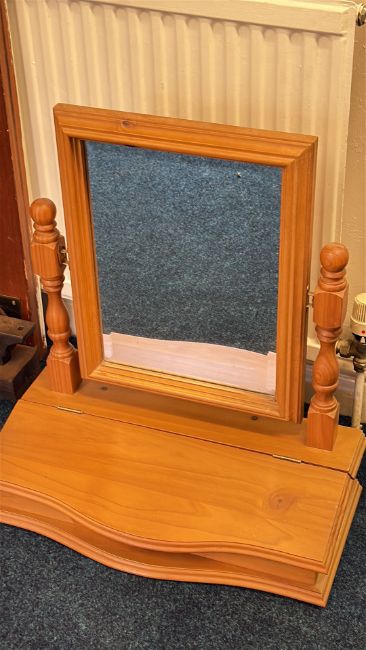 Pine tabletop swivel dressing mirror with storage base