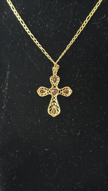 9ct Gold & cross pendant, pendant set with 5 garnets Weight 4.6g