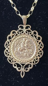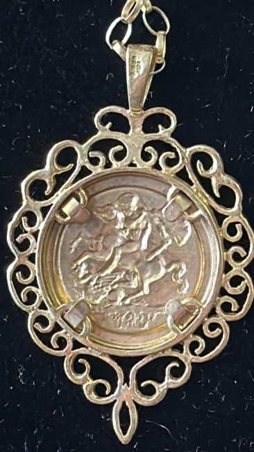 9ct Gold chain & pendant St George coin pendant Weight 4.7g