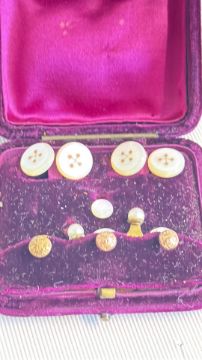 Gold plate mother of pearl cufflinks & studs