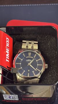 Gents Time 100 Steel Quartz Watch In Box with papers and tag.