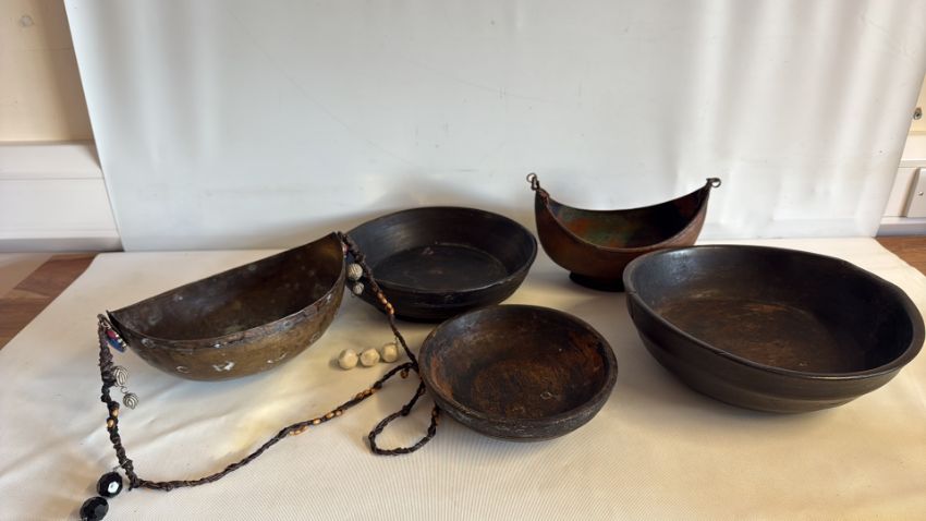 Group of Five Wooden and Metal Rustic Bowls
